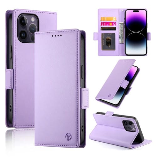 Funda para Teléfono iPhone 14 Pro Max Cuero Esmerilado Magnético con Hebilla Lateral (Púrpura)