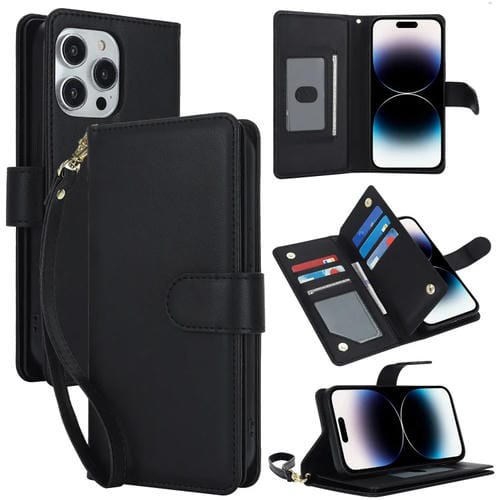 Funda para Teléfono iPhone 14 Pro Max Cuero Rfid con Billetera MultiTarjeta (Negro)