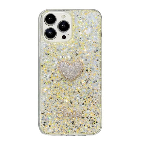 Funda para Teléfono TPU Epoxi para iPhone 14 Pro Max con Corazón de Diamante y Lentejuelas Estrelladas (Amarillo)