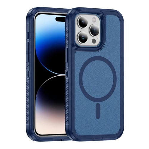 Estuche para teléfono iPhone 14 Pro Max Guard Magsafe con anillo magnético mate (Azul Real)