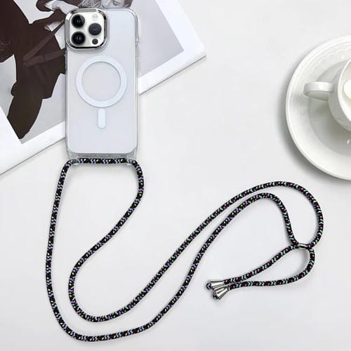 Pour iPhone 14 Pro Max MagSafe Magnetic PC + TPU Phone Case avec lanière (noir coloré)