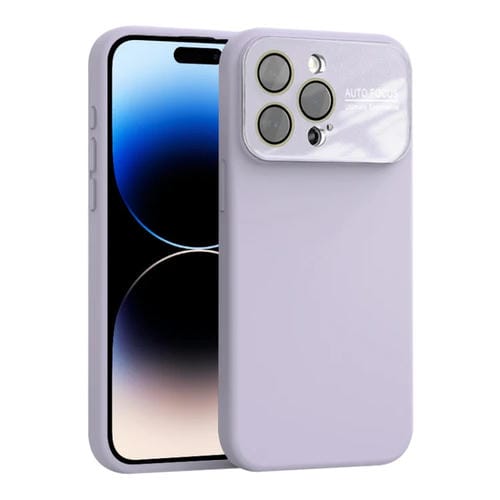 Película de Lente Acrílica + Funda Silicona Líquida para iPhone 14 Pro Max Cobertura Total (Púrpura)