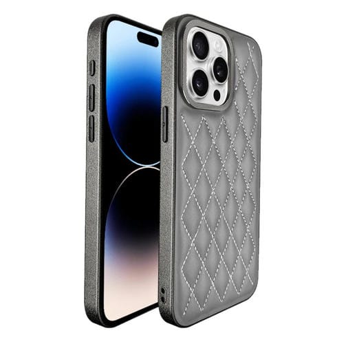 Estuche para Teléfono iPhone 14 Pro Plaid Series 9D Galvanizado (Gris Titanio)