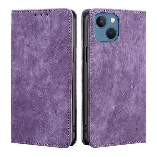 Funda de Cuero Magnética para iPhone 14 con Rfid y Cepillo Antirrobo (Púrpura)