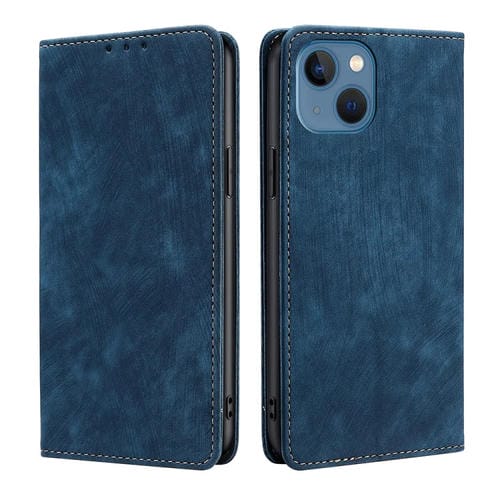 Funda de Teléfono iPhone 14 Cuero Magnético Rfid Antirrobo con Cepillo (Azul)