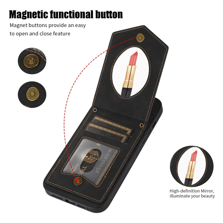 Funda para iPhone 14 Rhombic Texture Rfid con Cordón y Espejo (Negro)