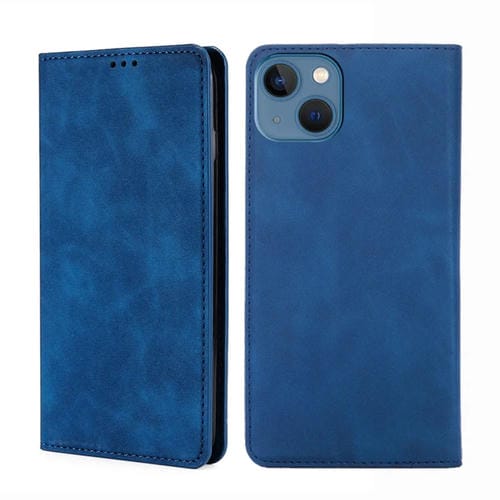 Pour iPhone 14 Skin Feel Étui de téléphone en cuir magnétique (Bleu)