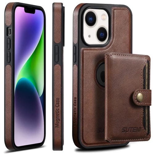 Funda para Teléfono Suteni M1 Oil Wax Magsafe para iPhone 14 con Bolsa para Tarjeta Horizontal Desmontable (Marrón)
