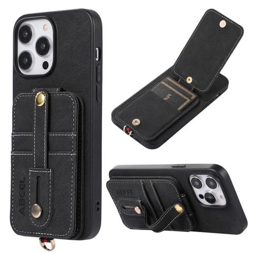 Funda para iPhone 15 Abeel Litchi Texture Card Bag Pu Phone Case (Negro)