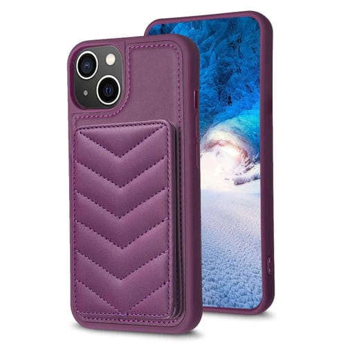 Funda para teléfono iPhone 15 Bf26 Wave Pattern Card Bag Holder (Púrpura Oscuro)