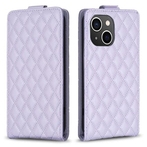 Funda de Cuero iPhone 15 Diamond Lattice Vertical Flip Protección (Púrpura)
