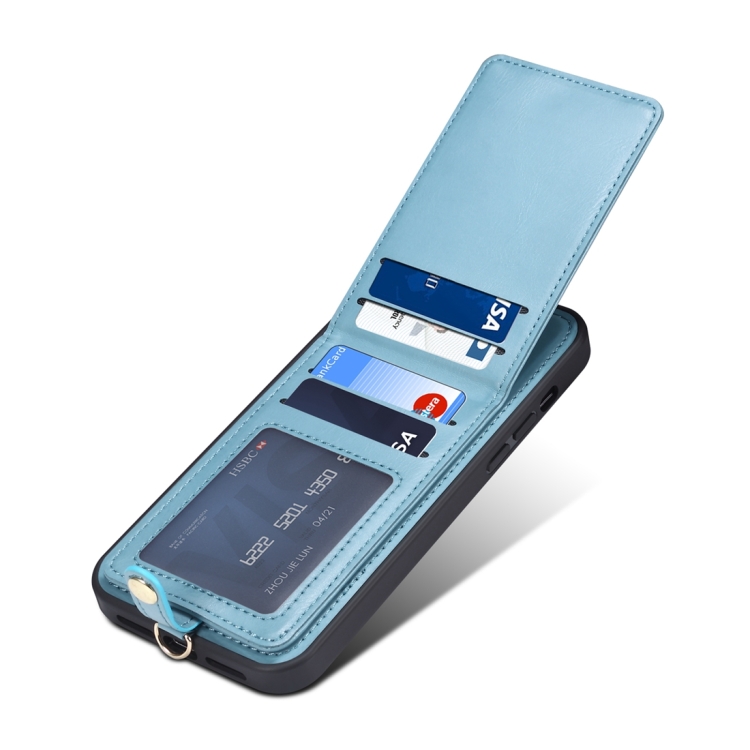 Funda para teléfono Eseble Star Series iPhone 15 con ranura para tarjeta y soporte para cordón (Azul)