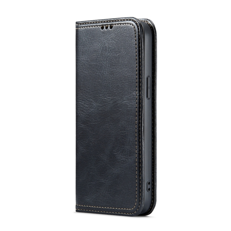 Funda para teléfono Fierre Shann Vintage Bark Texture Wallet para iPhone 15 (Negro)