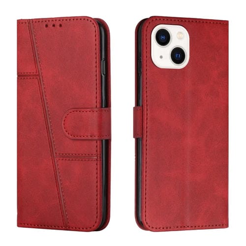 Funda de Teléfono iPhone 15 Cuero con Hebilla Textura de Becerro Cosida (Rojo)