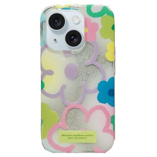 Funda para Teléfono TPU iPhone 15 Cobertura Total IMD Doble Cara (Línea de Gancho, Flores Rosadas Moradas)