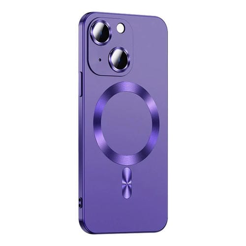 Pour iPhone 15 Magsafe Phone Case avec protecteur de lentille liquide (violet foncé)