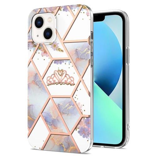 Pour iPhone 15 Galvanoplastie Épissage Marbre Fleur Motif TPU Étui Antichoc (Couronne)