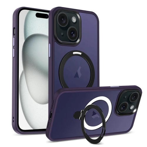 Funda para Teléfono iPhone 15 Magsafe Holder Skin-Feel PC Hybrid (Púrpura Oscuro)