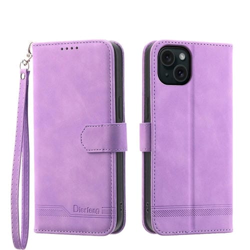 Funda para Teléfono iPhone 15 Plus Dierfeng Dream Line TPU + Cuero PU (Púrpura)