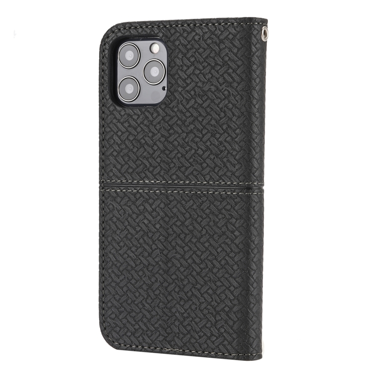 Funda para Teléfono iPhone 15 Plus Cuero Magnético con Costuras Textura Tejida (Negro)