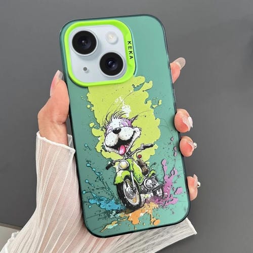 Funda para Teléfono iPhone 15 Plus Imd Animal Graffiti TPU + PC Doble Cara (Perro de Motocicleta)