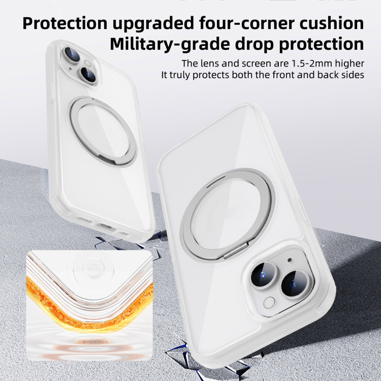 Funda para teléfono iPhone 15 Plus Magsafe Holder PC Hybrid TPU (Blanco Transparente)