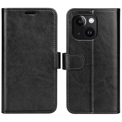 Funda de Cuero para iPhone 15 Plus R64 con Tapa Textura Horizontal (Negro)