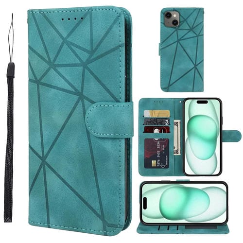 Pour iPhone 15 Plus Skin Feel Lignes géométriques Étui de téléphone en cuir (Vert)