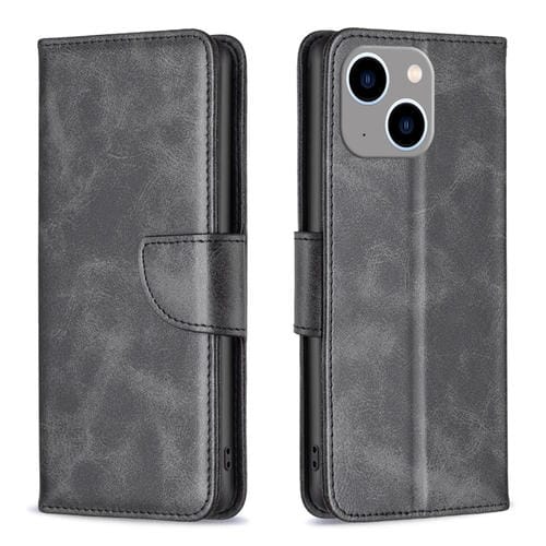 Pour iPhone 15 Plus Étui de téléphone en cuir à rabat de couleur pure à texture en peau d'agneau (Noir)