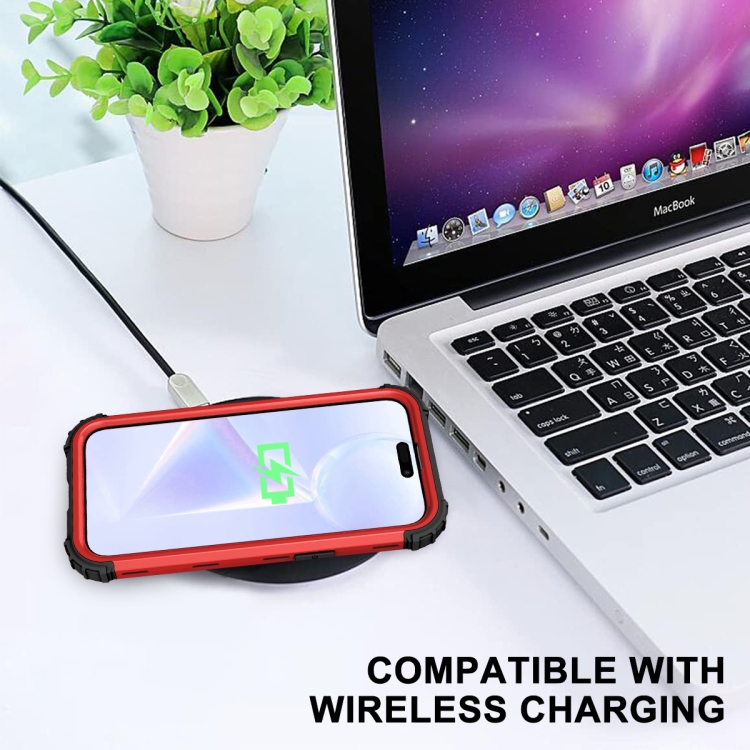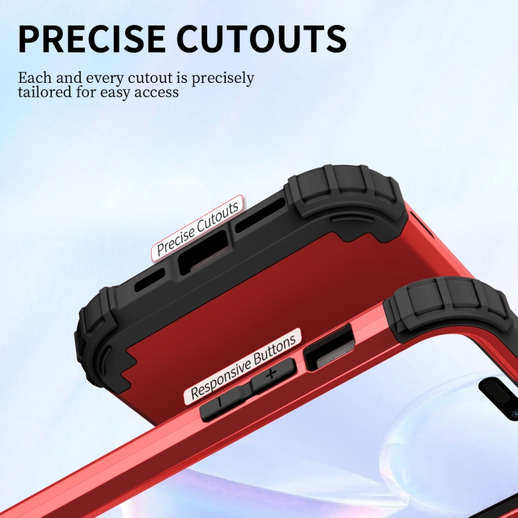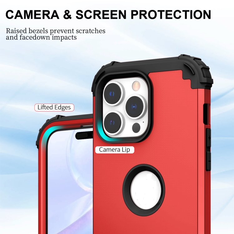 Funda de teléfono híbrida para iPhone 15 Pro 3 en 1 silicona y PC a prueba de golpes (Rojo)