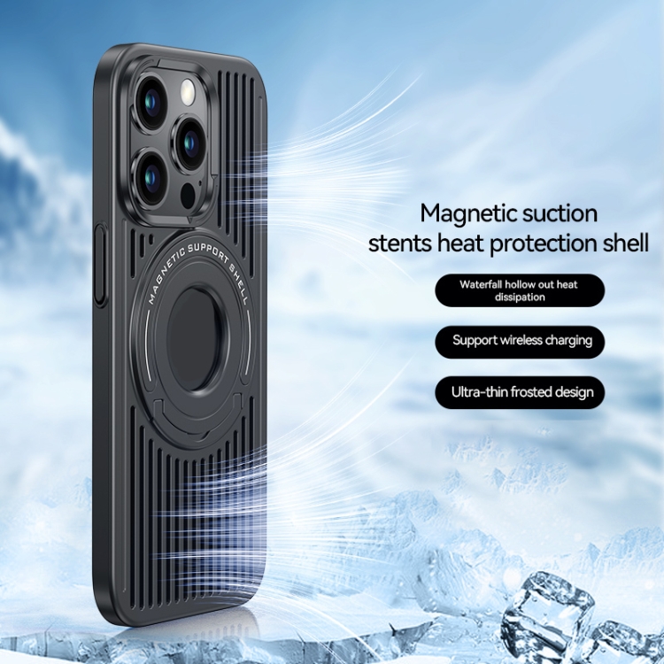 Estuche para Teléfono iPhone 15 Pro Cooling Magsafe con Soporte de Anillo Magnético (Negro)