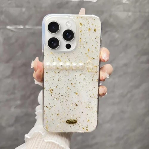 Estuche para Teléfono TPU iPhone 15 Pro Lazo de Perlas Lámina Dorada (Perla)
