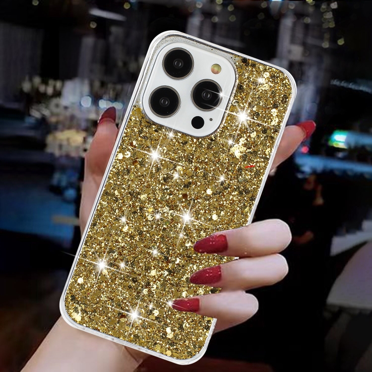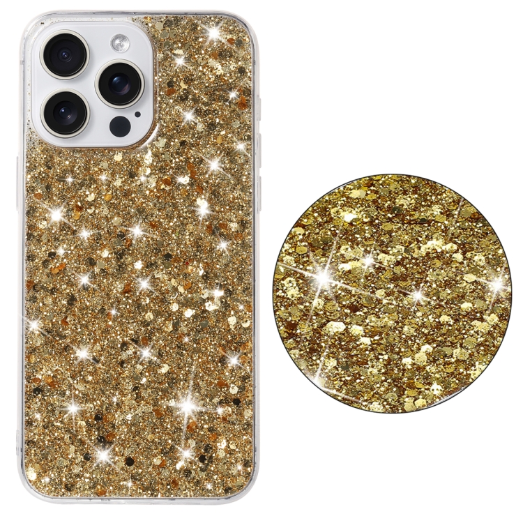 Estuche para Teléfono iPhone 15 Pro Transparente con Purpurina en Polvo TPU (Dorado)