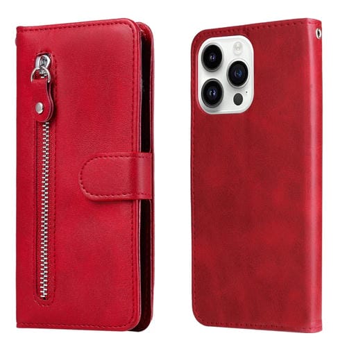 Funda para iPhone 15 Pro Becerro Textura Cremallera Cuero (Rojo)