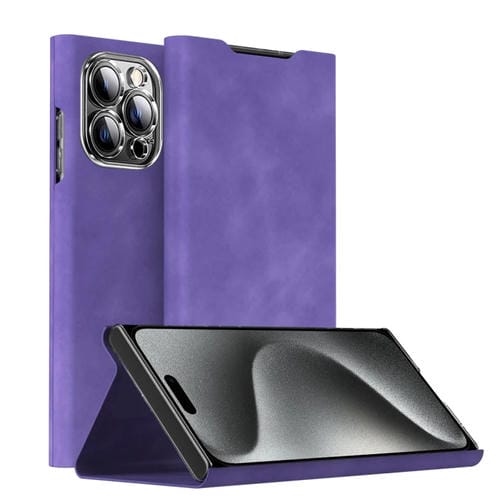 Funda Magnética de Cuero para iPhone 15 Pro con Textura de Napa y Soporte (Púrpura)