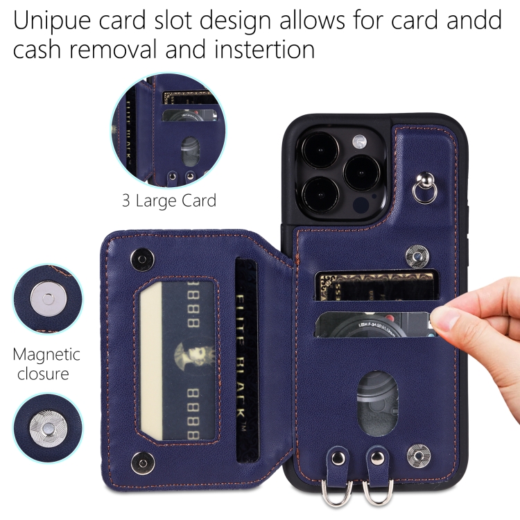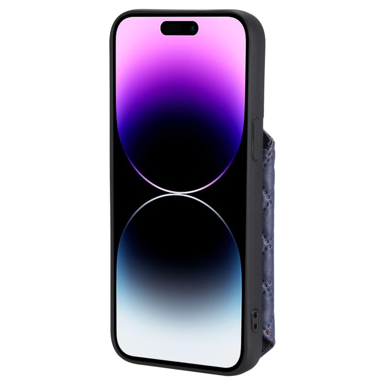 Funda para Teléfono iPhone 15 Pro Bolsa para Tarjetas Textura de Rejilla con Cordón (Azul)