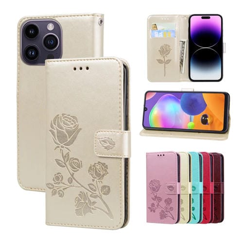 Funda para Teléfono iPhone 15 Pro Cuero PU Tapa En Relieve (Rosa Dorado)