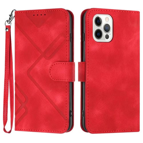 Funda para teléfono iPhone 15 Pro Line Pattern Skin Feel de cuero (Rojo)
