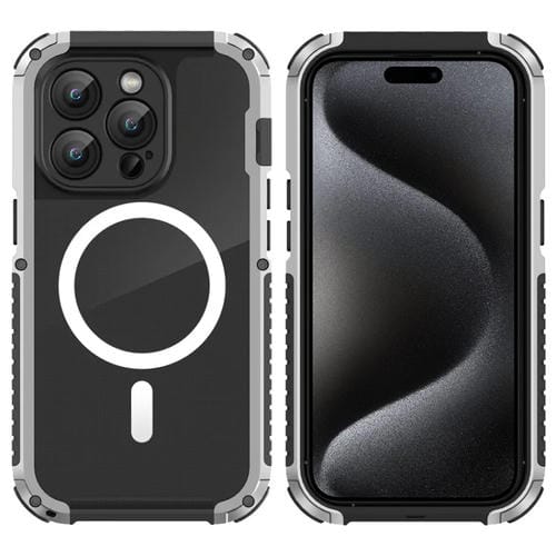 Caja de Teléfono para iPhone 15 Pro Magsafe Metal a Prueba de Golpes (Plata)