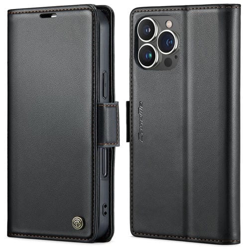 Funda para Teléfono Caseme 023 iPhone 15 Pro Max Cuero Antirrobo Textura Litchi Hebilla Mariposa Rfid (Negro)