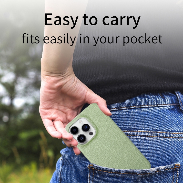 Funda Trasera para iPhone 15 Pro Max Litchi Oil Edge de Cuero (Verde Té)