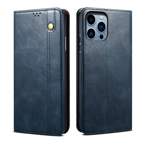 Funda para Teléfono iPhone 15 Pro Max Oil Wax Crazy Horse Textura Cuero (Azul)