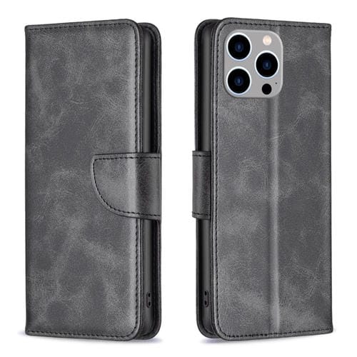Pour iPhone 15 Pro Max Texture peau d'agneau Étui de téléphone en cuir à rabat de couleur pure (Noir)