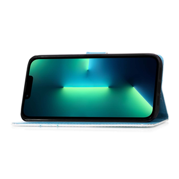 Funda de Cuero para iPhone 15 Pro Patrón de Dibujo Coloreado Tejido Liso (Mariposa Cariñosa)