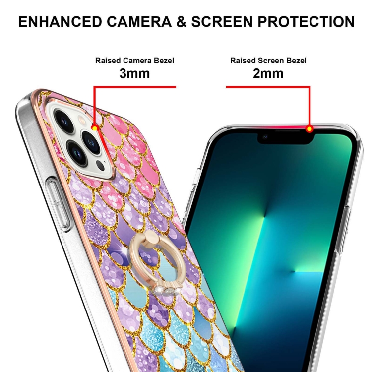 Estuche TPU para iPhone 15 Pro con Patrón de Galvanoplastia Imd y Soporte para Anillo de Diamantes de Imitación (Escamas de Colores)