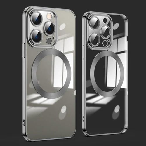 Protector de Lente para iPhone 15 Pro Magsafe Caja de Teléfono Galvanizada (Negro)