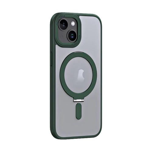 Funda para Teléfono iPhone 15 Skin Feel Magsafe a Prueba de Golpes con Soporte (Verde Oscuro)