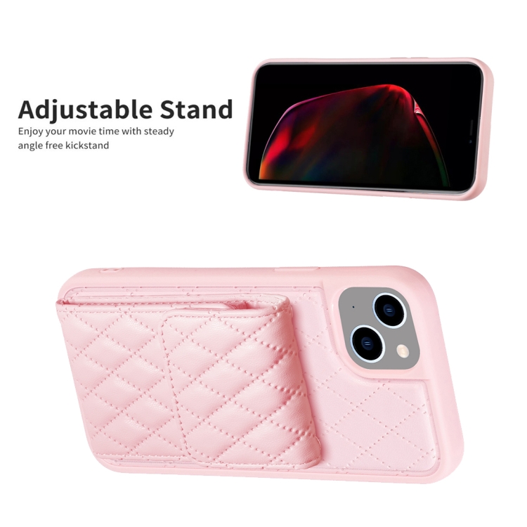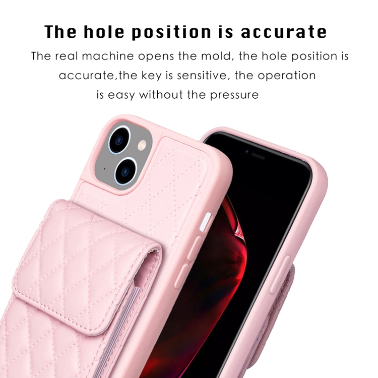 Funda Vertical Wallet Rhombic Leather para iPhone 15 (Rosa)