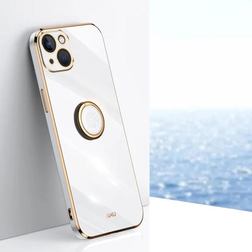 Estuche para teléfono Xinli iPhone 15 TPU Electrochapado 6D Borde Recto Soporte para Anillo (Blanco)