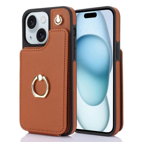 Funda para Teléfono Ym005 Skin Feel Card Bag iPhone 15 con Cordón Largo (Marrón)